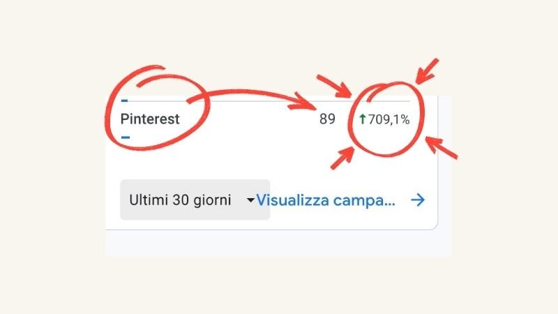 +709,1% di traffico proveniente da Pinterest negli ultimi 30 giorni.